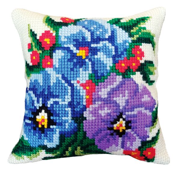 Σταυροβελονιά κιτ σταμπωτό μαξιλάρι σχέδιο ''πανσέδες'' Κωδ: Art. 01.164