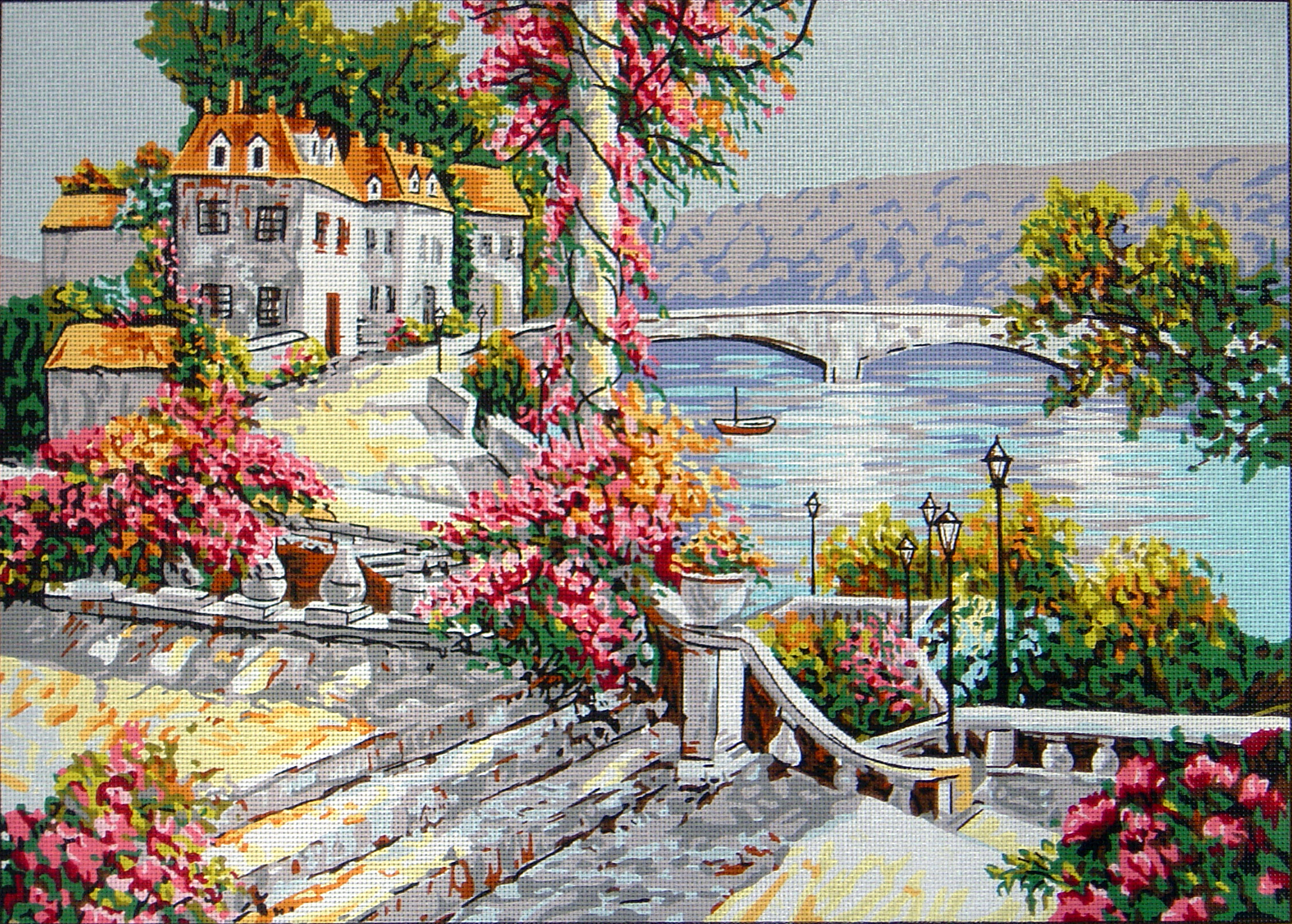 Σταμπωτός πίνακας με σχέδιο τοπίο,για κέντημα κομπλέν ή σταυροβελονιά με διαστάσεις καμβά 0.60 x 0.80 και διαστάσεις σχεδίου 0.50 x 0.70! Ο καμβάς έχει 4.0 βελονιές/cm!