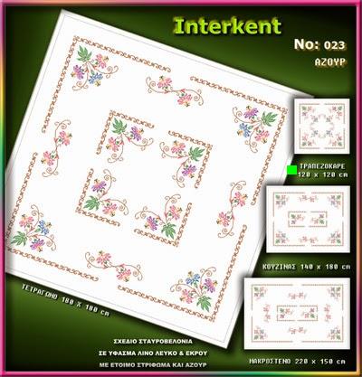 Σταμπωτό σχέδιο σταυροβελονιάς σε λινοβάμβακο ύφασμα με έτοιμο στρίφωμα και αζούρ