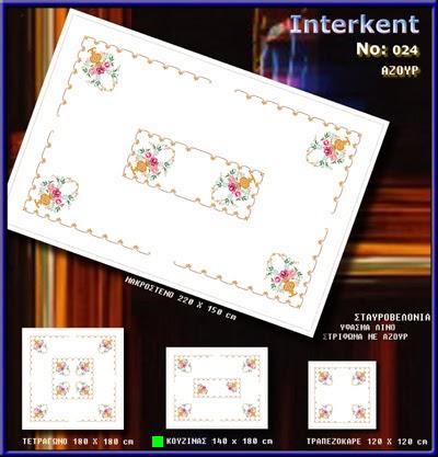 Σταμπωτό σχέδιο σταυροβελονιάς σε λινοβάμβακο ύφασμα με έτοιμο στρίφωμα και αζούρ